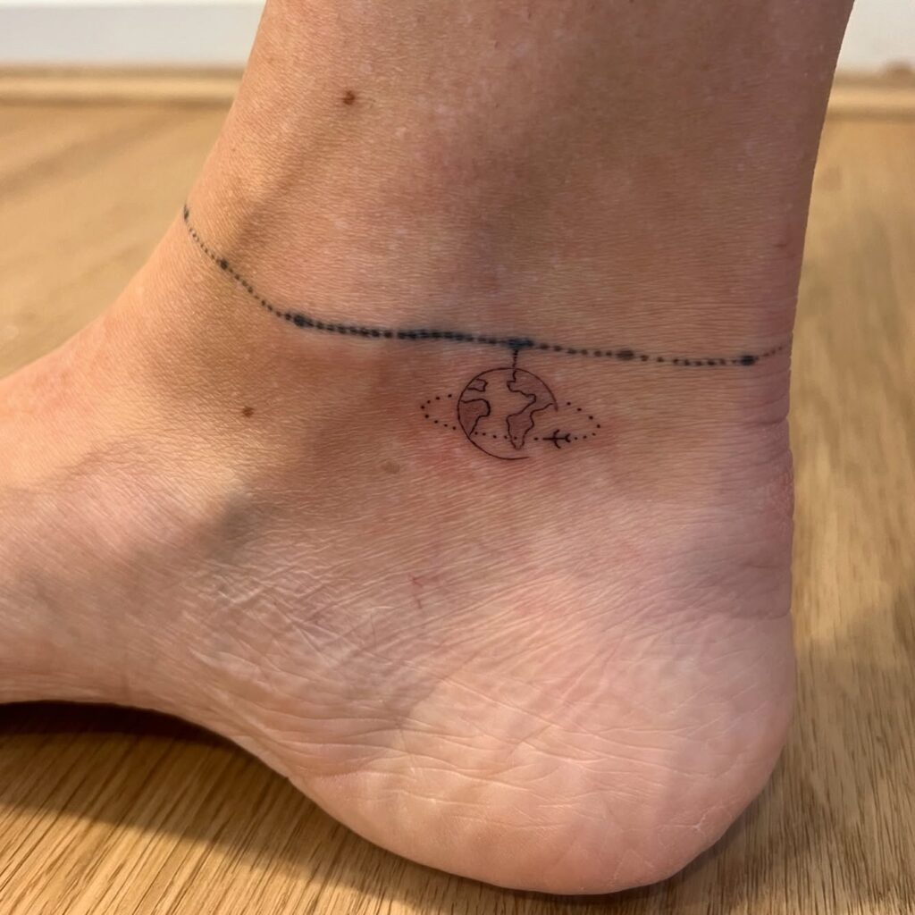 This design is perfect for all the travelers out there. This tiny plane circling a minimalist globe, all hanging from a dotted anklet. It’s absolutely a fun way to show your love for exploring the world.