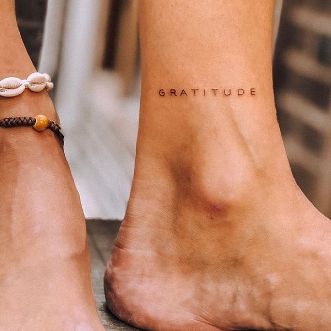 I feel like having the word gratitude on your ankle is such a beautiful way to do that. The font is clean and modern, which makes it look very professional.
