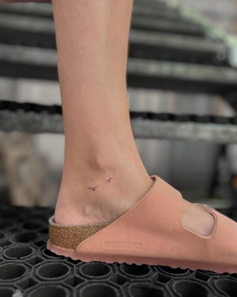 These two tiny silhouettes are placed perfectly near the ankle bone. It is a very clean and classic look that will never go out of style.