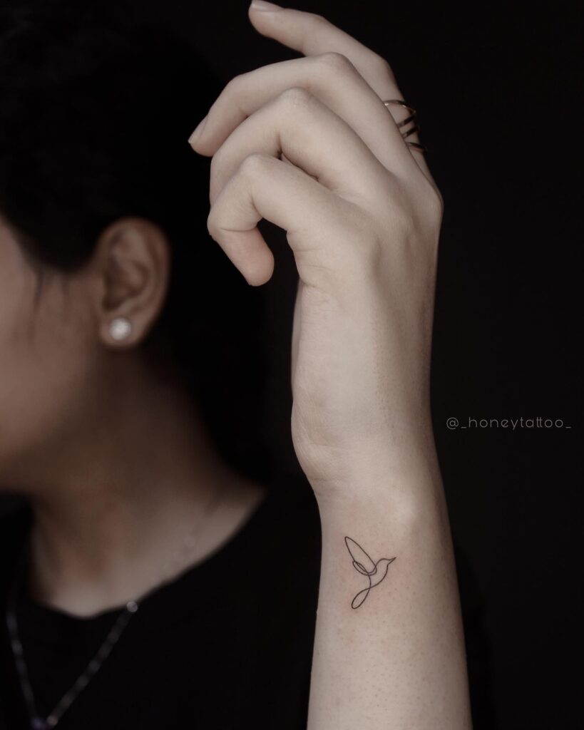I’d recommend this one line hummingbird if you want something that looks like a piece of art. It is so delicate that it almost looks like a thread on your skin.