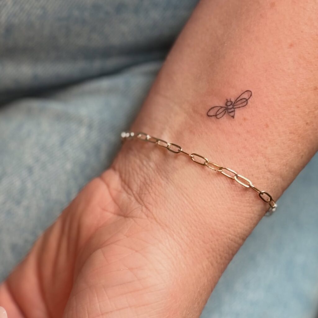 well placed honeybee is absolutely adorable and represents hard work and nature. I believe it looks so cute when it is done in this small, minimalist style.
