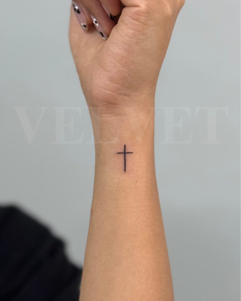 A simple cross is timeless. It is bold yet very small and understated. I suggest this if you want something that will always be in style.